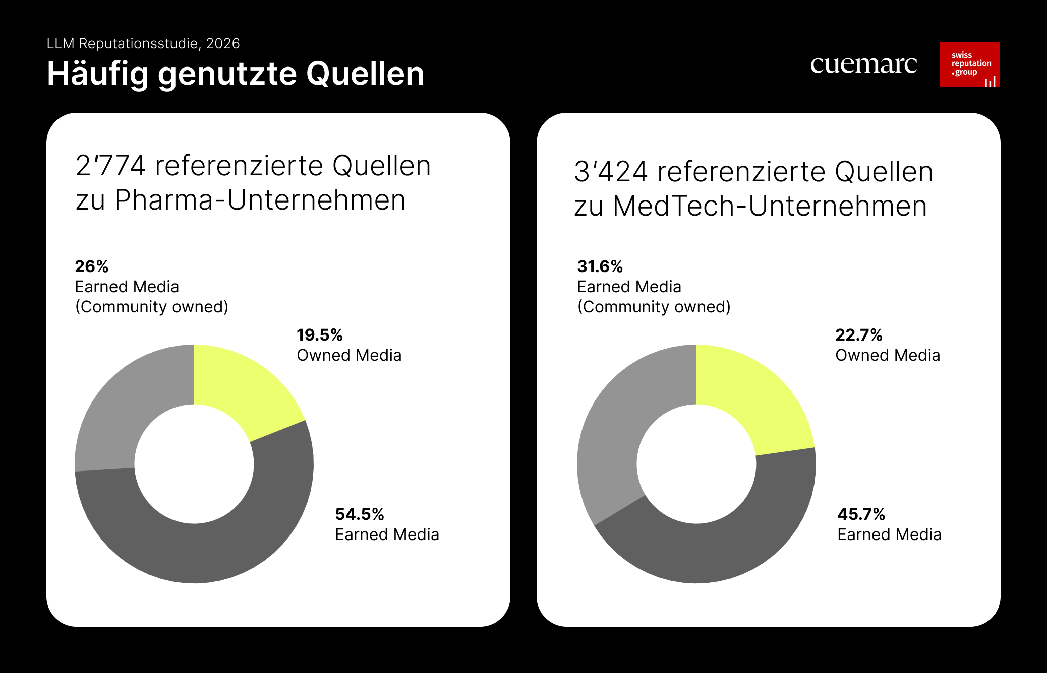 Mit dem Aufkommen der Künstlichen Intelligenz und den Large Language Modellen (LLM), wie ChatGPT, betreten mächtige neue Player die Reputationsbühne. Was KI-Tools über Unternehmen sagen, beeinflusst dabei zunehmend die Meinungsbildung. Die Kommunikationsabteilungen sind gefordert, Ihre «KI-Reputation» zu verstehen und mit geeigneten Massnahmen zu steuern. Mit der ersten LLM-Reputationsstudie zeigen cuemarc und die swissreputation.group, wie ChatGPT über die Pharma- und MedTech-Branche spricht.