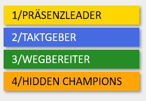 Die HIDDEN CHAMPIONS haben eine eher geringe Präsenz und streben nach stärkerer Positionierung.