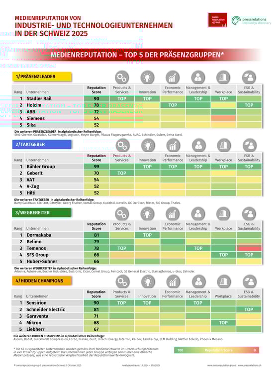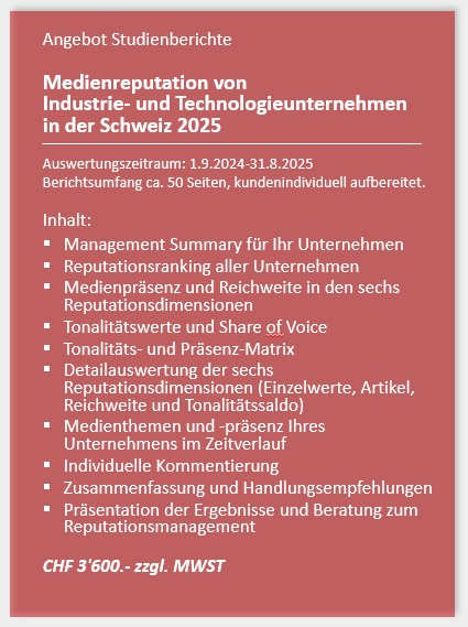 Medienreputation von Industrie- und Technologieunternehmen in der Schweiz 2025.