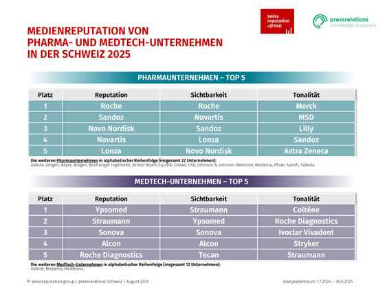 Medienreputation von Pharma- und MedTech-Unternehmen in der Schweiz 2025.