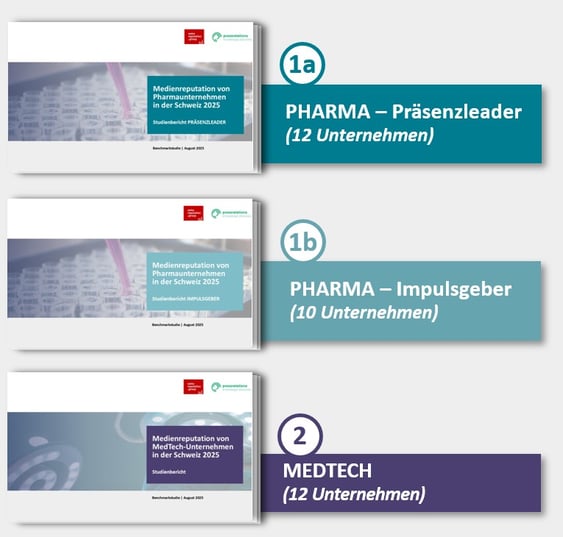 Die Benchmarkstudien der swissreputation.group bieten eine datengestützte Übersicht über die mediale Wahrnehmung führender Unternehmen in der Schweiz – jetzt erstmals auch für den Pharma- und MedTech-Sektor.